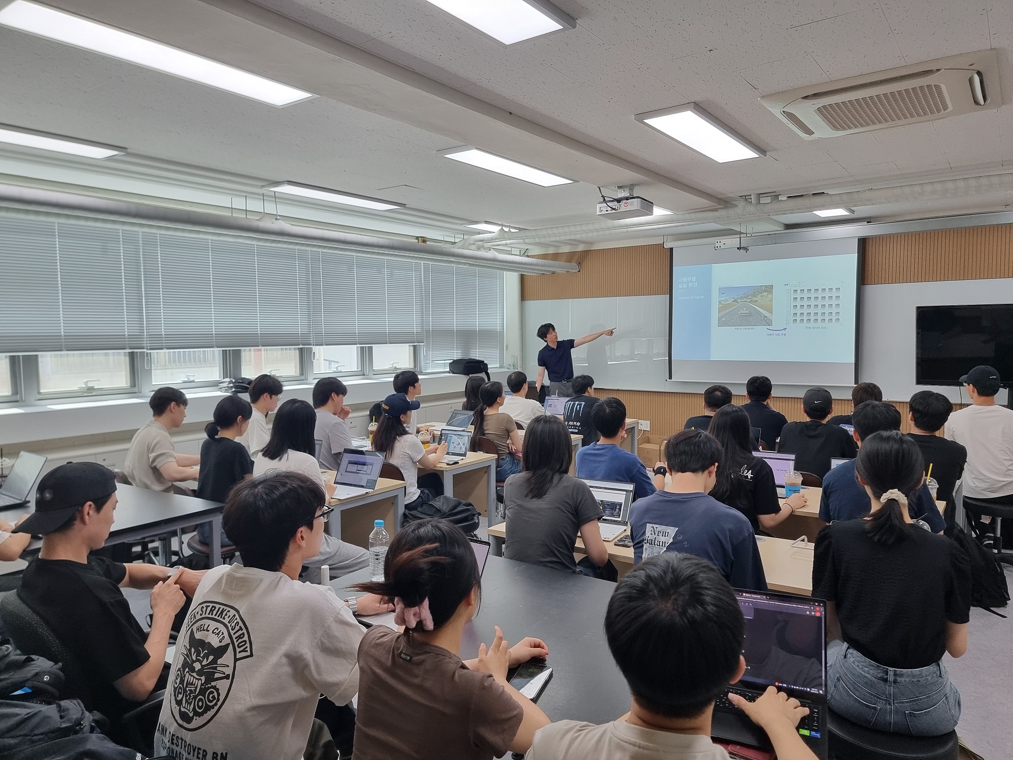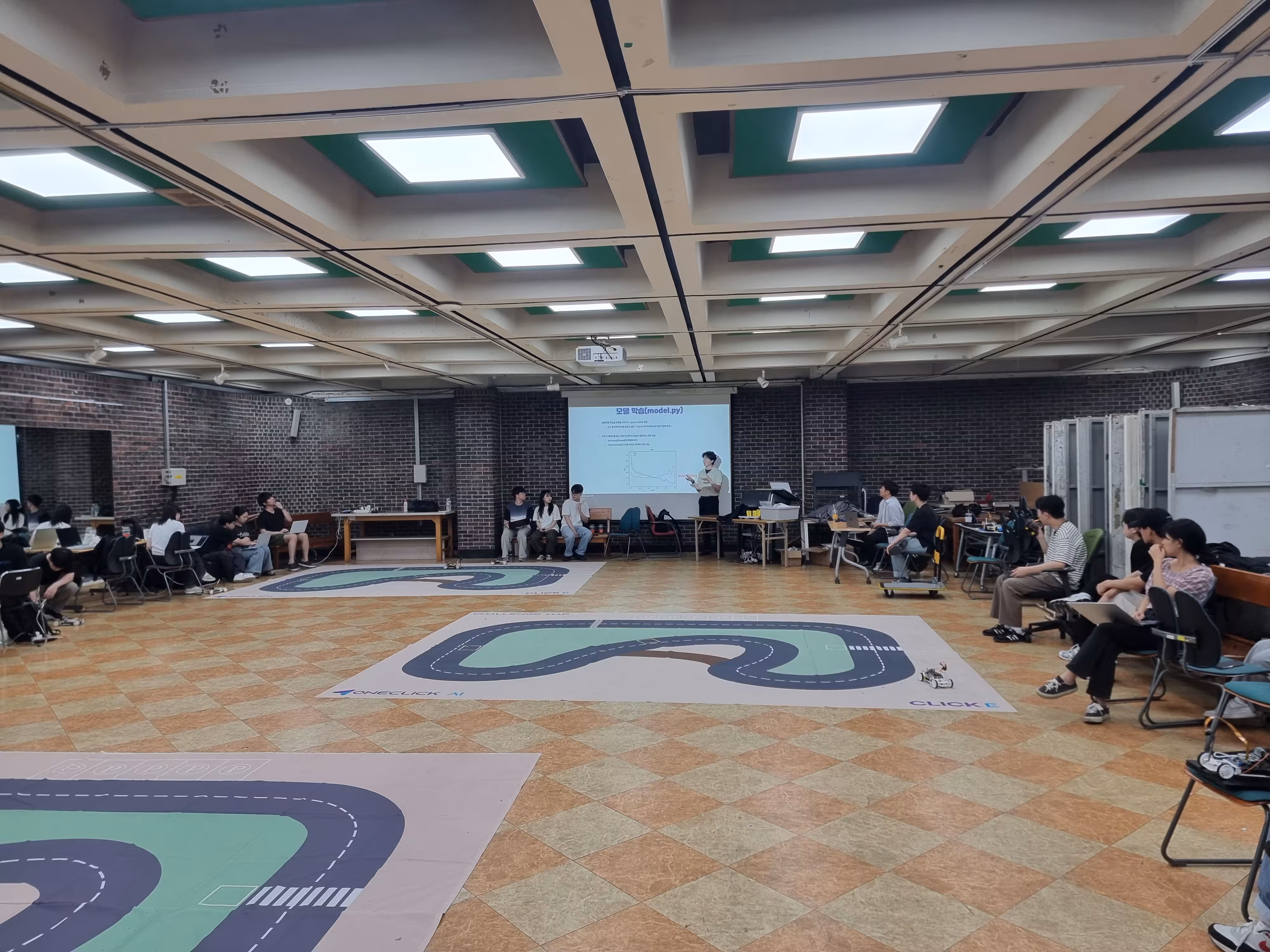 안녕하세요! 원클릭 에이아이의 오승영입니다. 이번에 미래형자동차 기술융합 혁신인재양성사업의 일환으로 계항공공학부, 전기전자공학부, 컴퓨터공학부 40여명 학생들을 대상으로 2일간 행동모사 자율주행 교육을 진행했습니다. 본 사업을 주도해주신 김창완 교수님과, 건국대 학생들, 특히나 이번 대회에서 수상한 학생들 모두 고생했습니다. 많은 학생이 참여하기에 대회 장소가 조금 협소했음에도, 모든 학생이 잘 참가해주어서 매우 고맙고, 특히나, 좋은 질문을 해주면서 전반적인 강의 수준을 올려준 학생들과 대회에서 좋은 결과 내준 학생들에게 아주 고맙다는 말을 남기고 싶습니다.