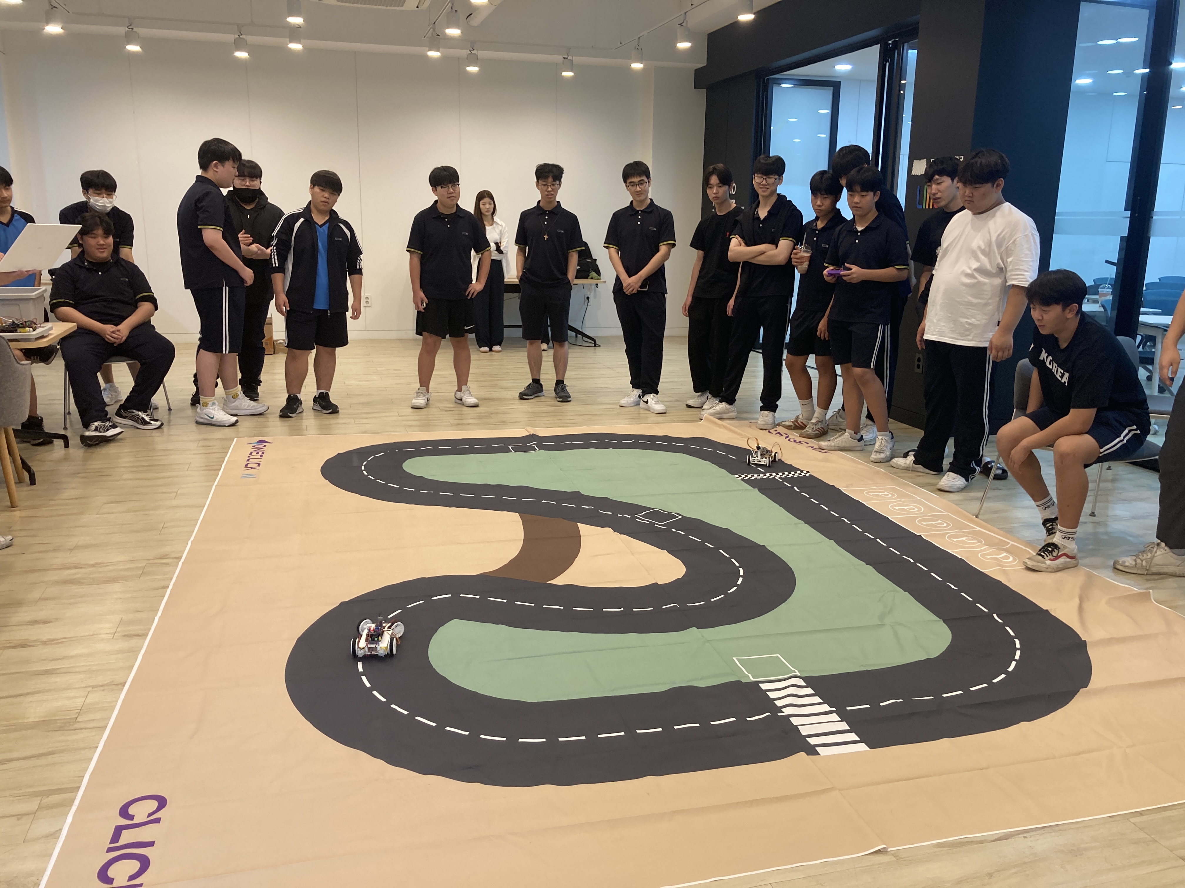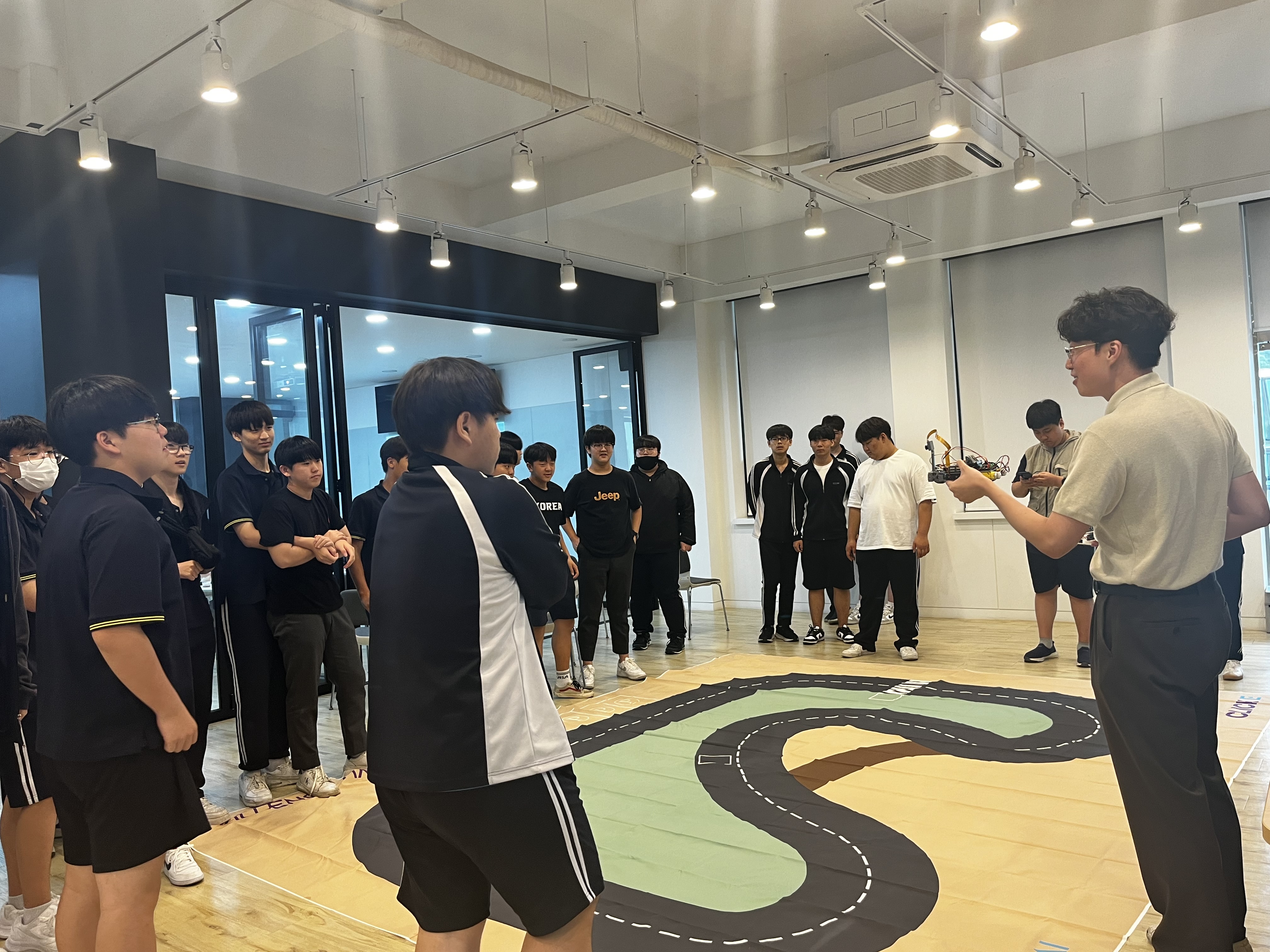 실제로 처음 차량을 조작해보는 학생들이 학습된 자율주행 차량을 이기는 것은 어려웠는데요. 많은 학생이 체험해보고 싶어 했음에도, 체험 도중 정말로 부득이한 상황이 발생하여 차량 한 대가 파손(학생들의 잘못은 아닙니다.)되어 더 많은 학생이 체험하지 못한 것은 아쉬웠습니다. 그럼에도 이렇게 차량을 직접 조작하는 실습 방식이 확실히 학생들에게는 더 흥미롭게 느껴지는 것 같습니다. 높은 참여율을 보여주었고, 말로만 하는 수업과는 달리 눈동자가 변하는 것이 느껴집니다.