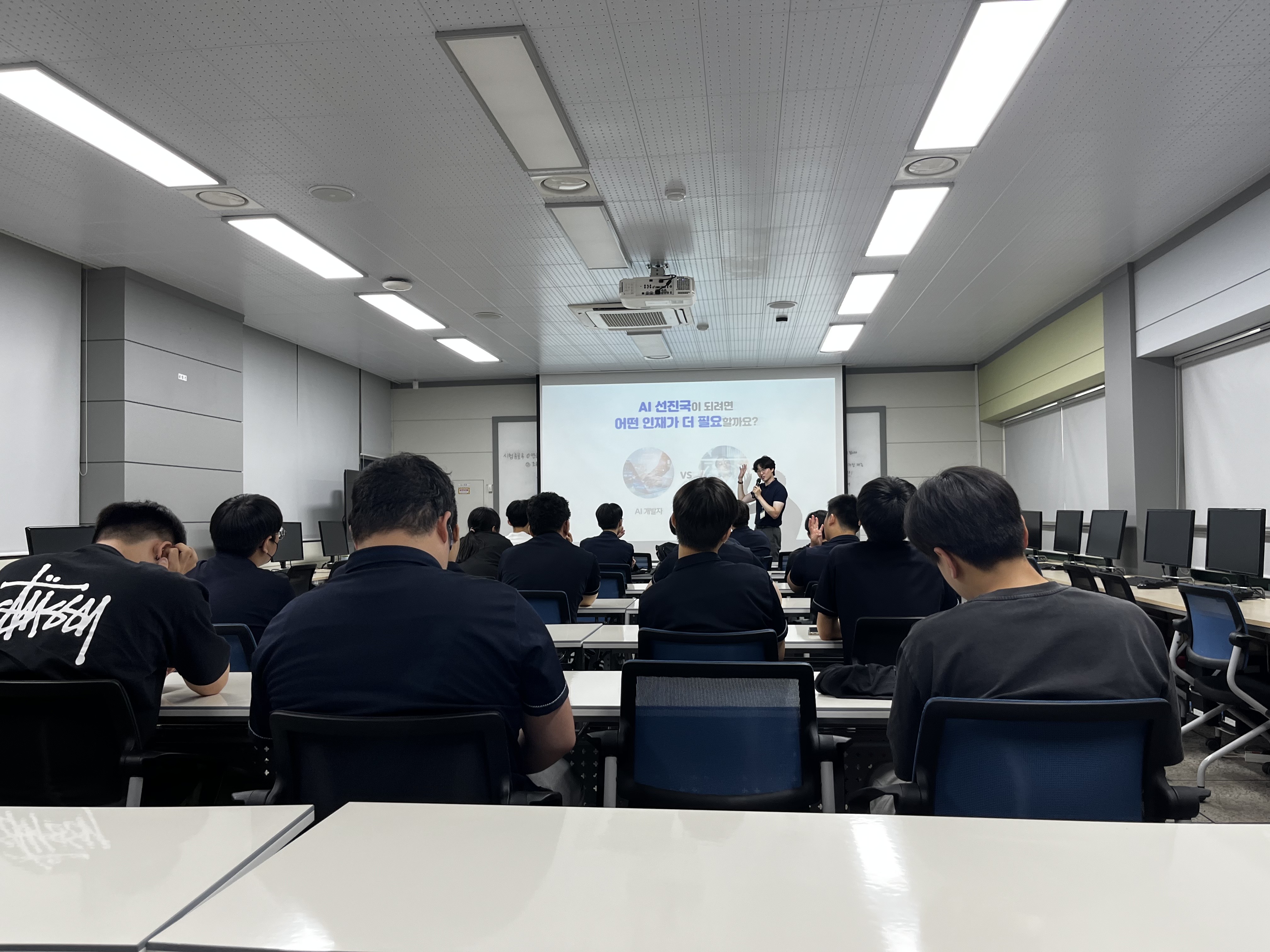 본 교육과정은 AI에 대해 배우기에는 부족한 시간이었을 수 있겠으나, 그럼에도 한 번 체험해보고 이후 학생들의 진로에 조금이나마 도움이 되었기를 바라봅니다. 사진에서 저렇게 저도 비슷한 옷을 입고 있으니 고등학생 같지 않나요? 죄송합니다. 그래도 뭔가 뿌듯해지는 사진입니다. 하지만 강의하는 입장으로서 조금 더 나이가 들어 보여도 괜찮을 것 같습니다. 괜히 교수님들이 흰머리 염색을 안 하시는 게 아닌 것 같네요.