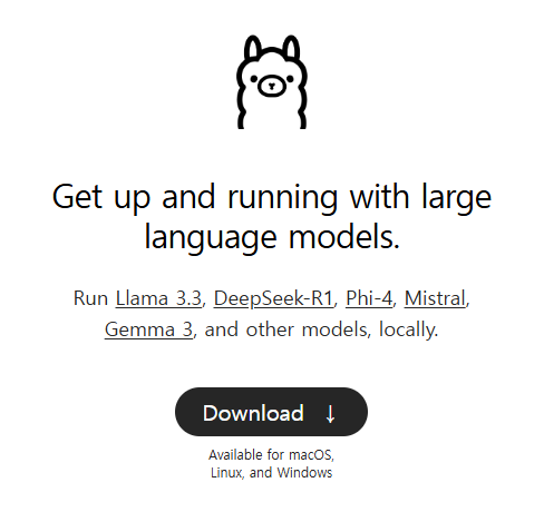 ollama는 이런 공개된 모델을 여러분들의 컴퓨터에서, 즉, 로컬에서 이러한 언어모델을 쉽게 다운받고 실행 시킬 수 있는 오픈소스 프로그램입니다. 이번 블로그에서는 ollama를 활용해서 아주 쉽게 이런 llama 모델, deepseek 모델을 활용하는 방법을 알려드리겠습니다. ^^