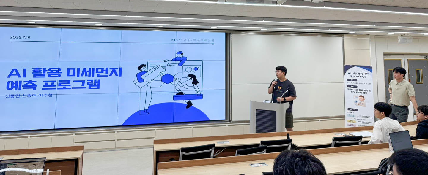 이 조는 과거의 미세먼지 농도 데이터를 기반으로, 앞으로 일정 기간의 미세먼지 농도를 예측하는 AI 모델을 만들었습니다. 미세먼지는 그 이름처럼 입자 크기가 매우 작아서 일반 마스크로도 완전히 막기 어렵다는 이야기가 많습니다. 결국 가장 좋은 방법은 “미리 농도를 예측해서 외부 활동을 조절하는 것”이겠죠.