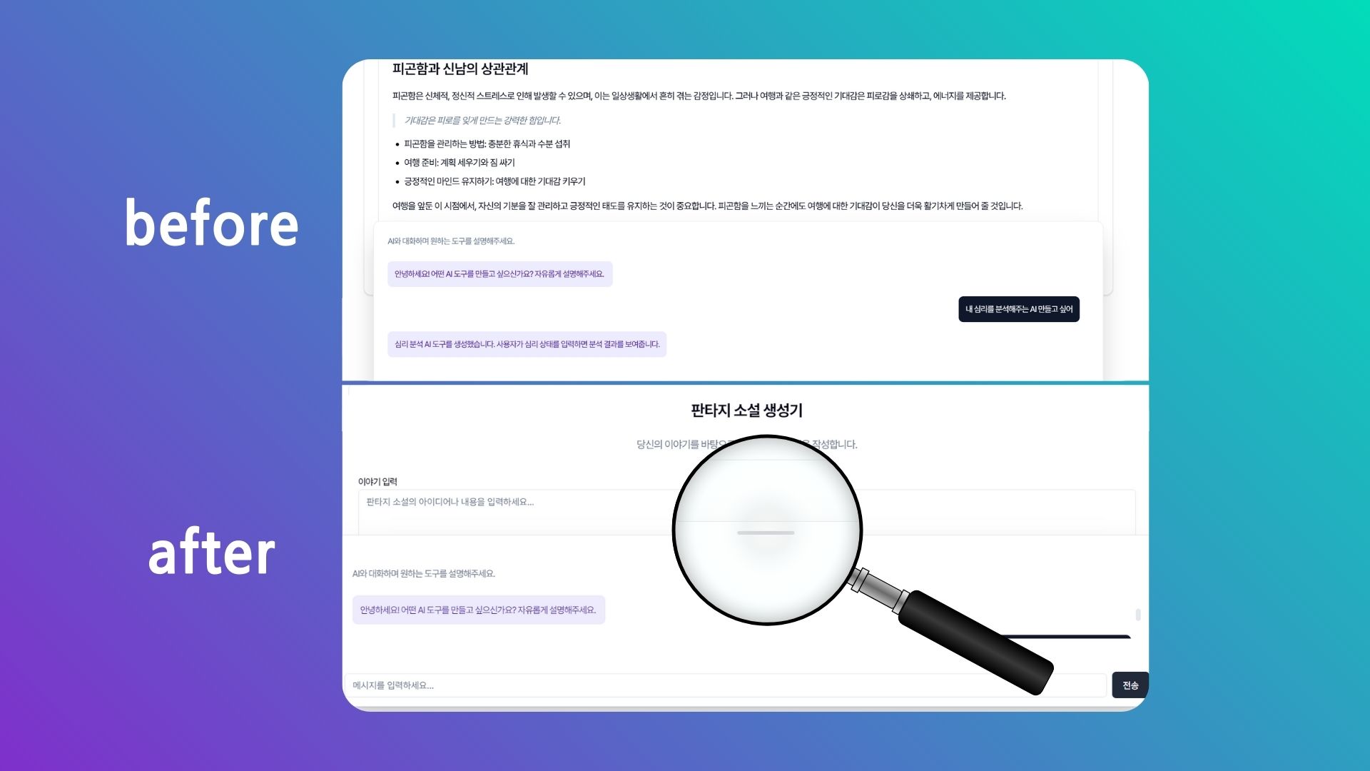 - 이제 분석 결과를 보면서 동시에 편하게 AI와 대화할 수 있어요!