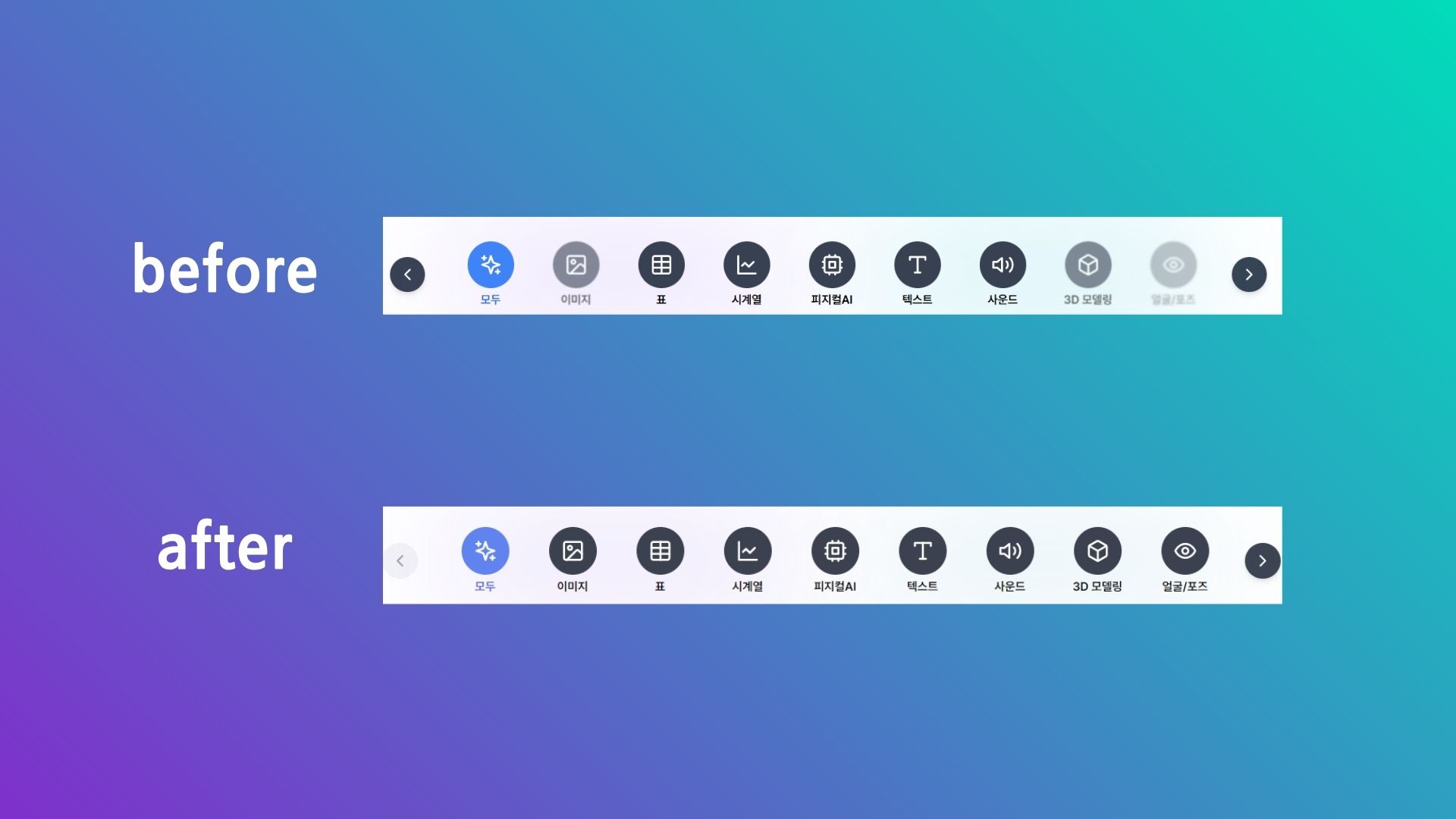 - 클릭 가능한 요소와 비활성 요소의 색상 대비 차이를 강화했습니다