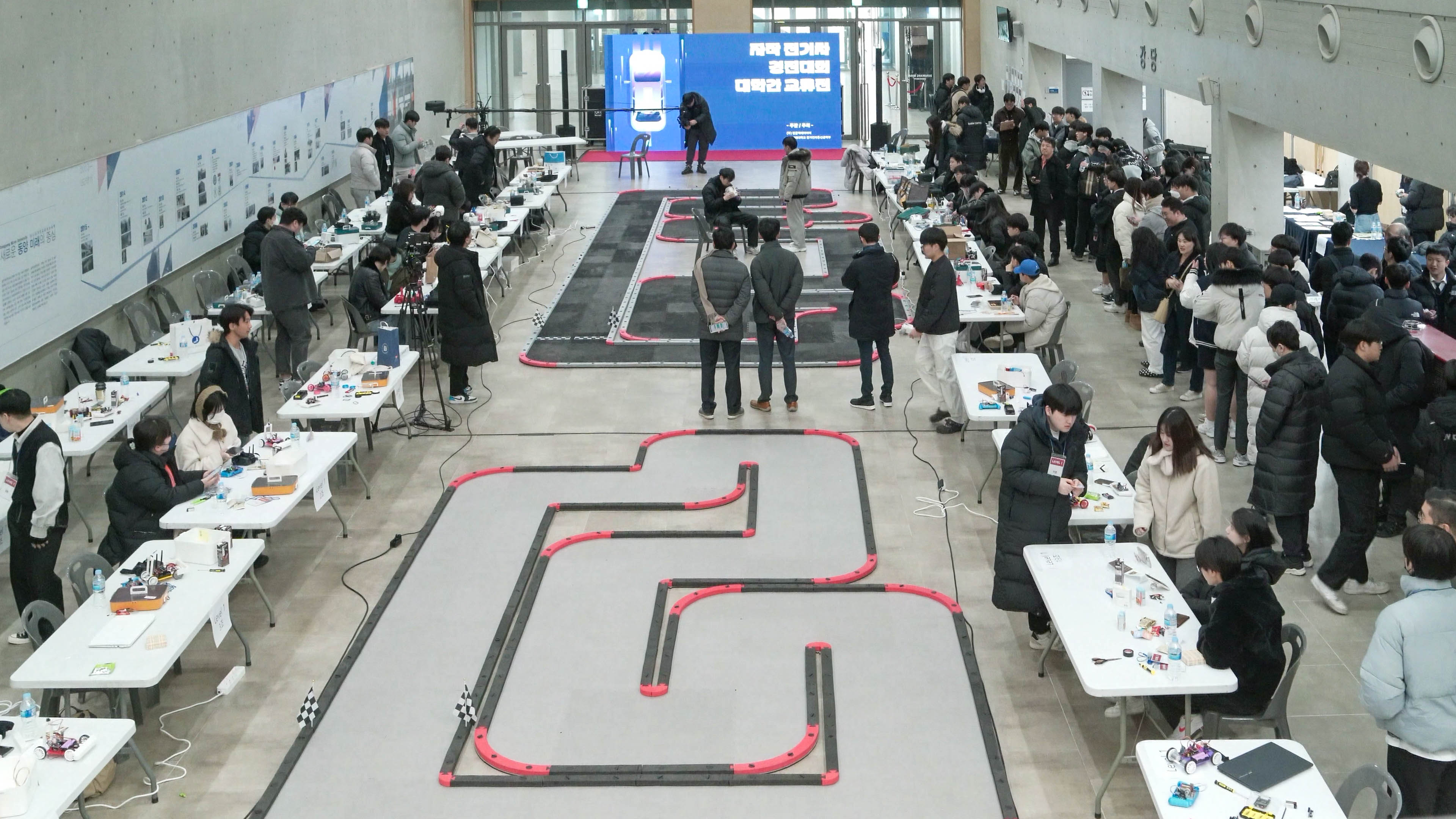 기본/대회용/커스텀 버전으로 제작되는 자율주행 트랙입니다. 다양한 사이즈로 구성할 수 있고, 목적에 맞게 레이아웃을 맞춤 제작해 지름길·신호등·장애물 등 실전 미션을 자유롭게 설계할 수 있습니다.